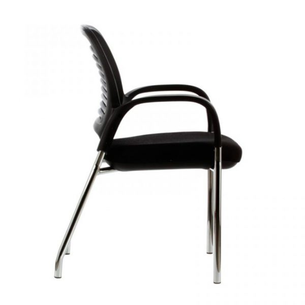 Silla de visita cuatro patas. Respaldo en malla negra. Con brazos incorporados a su estructura. Elegante e innovador diseño, gracias a la malla del respaldo que proporciona comodidad para salas de espera o visita. Ideal para acentuar espacios internos de oficinas.